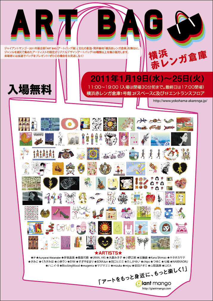 [...] 来場者には抽選でバッグをプレゼント! ぜひこの機会をお見逃しなく! http://giantmango.com/artbag2011-1372 [会期] 2011年1月19日(水)竏鈀1月25日(火) [...]